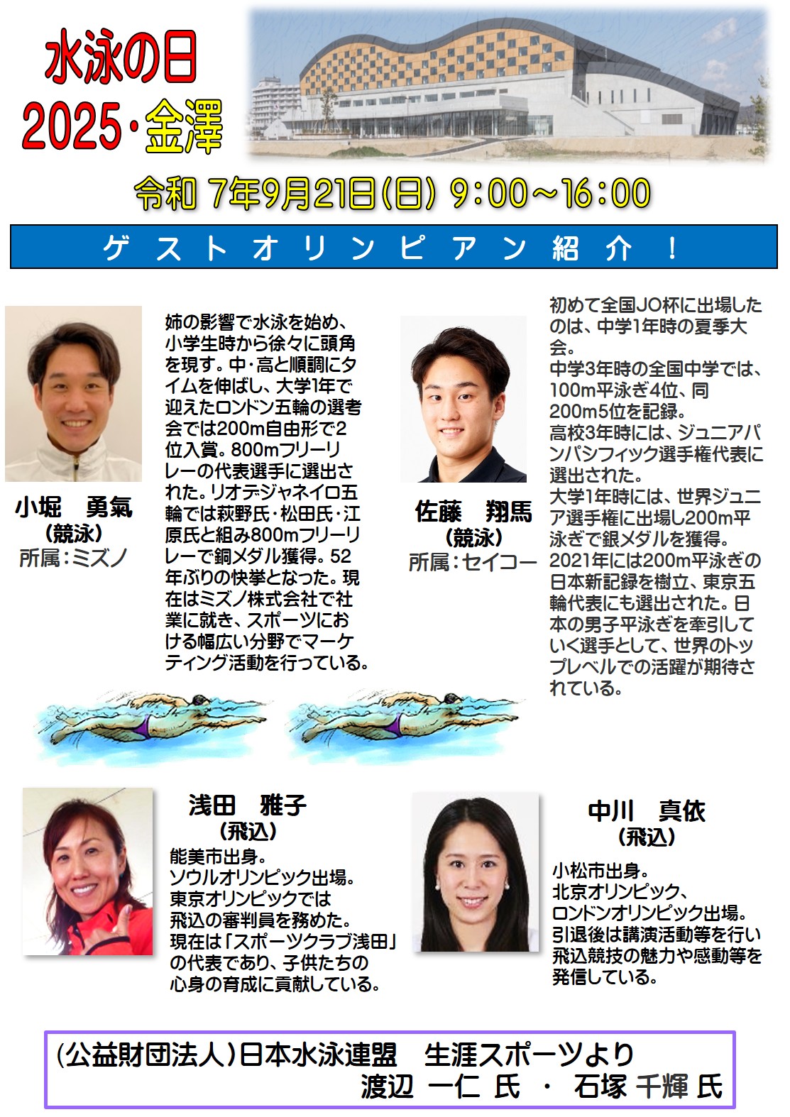 - 令和7年は、「金沢スポーツパークフェスタ 水泳の日2025」として開催
